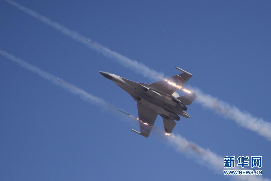 空軍某基地航空兵某旅戰機對目標發射火箭彈(2月21日攝)。新華社發(王世瑩 攝)
