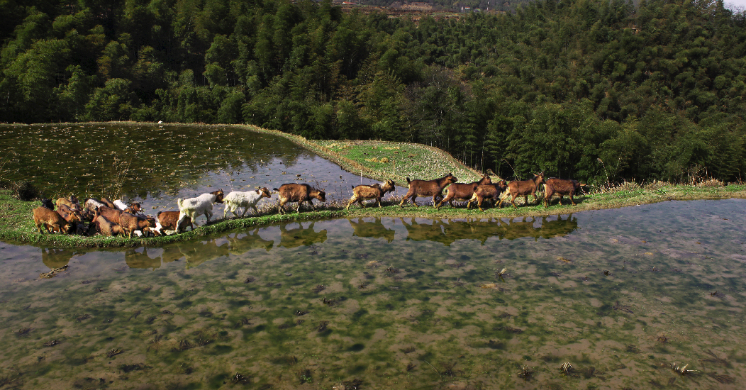 ????2016年12月, 湖南省常德市桃源縣楊溪橋鎮煌山村貧困戶孔文斌享受黨的扶貧好政策,用貸款購買了十多只羊,發展家庭養殖業。周桂成 攝