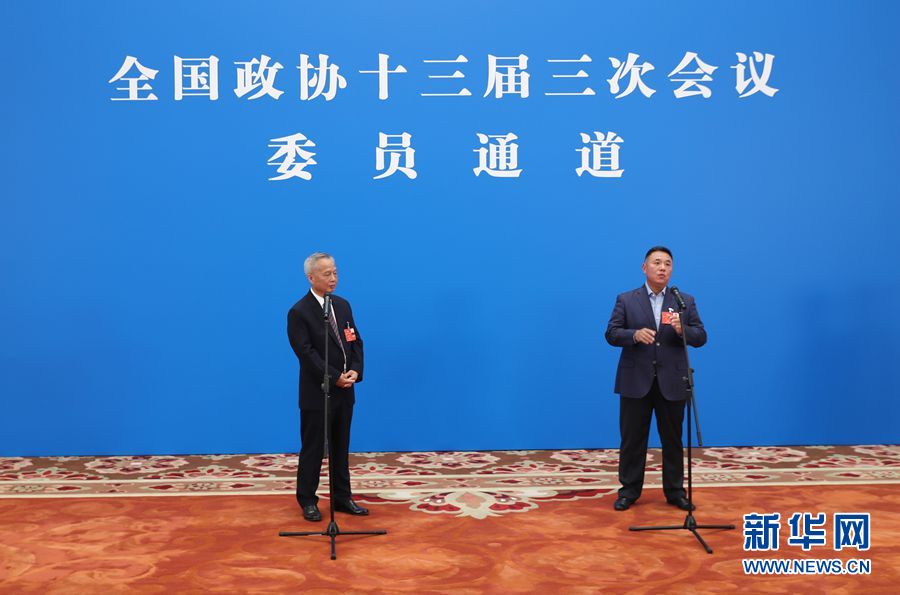 全國政協(xié)十三屆三次會議首場“委員通道”采訪活動于5月21日在人民大會堂新聞發(fā)布廳舉行,邀請部分全國政協(xié)委員通過網(wǎng)絡(luò)視頻方式接受媒體采訪。圖為“委員通道”現(xiàn)場。新華網(wǎng) 王翰林 攝