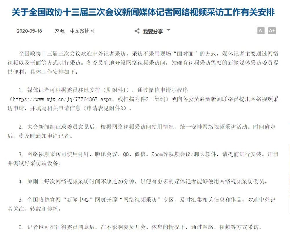 兩會開幕在即,5月18日,中國政協網發布了這樣一則通知: