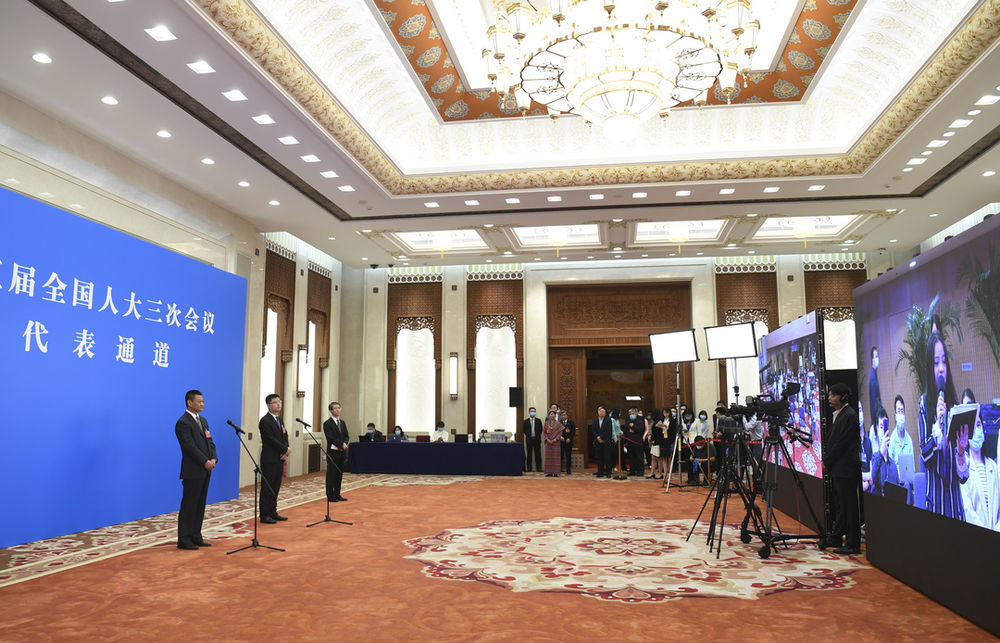 這是全國人大代表通過網絡視頻方式接受采訪。(新華社記者金良快 攝)
