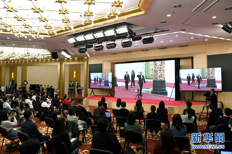 5月28日,國務院總理李克強在北京人民大會堂出席記者會并回答中外記者提問。這是記者在梅地亞中心多功能廳采訪。 新華社記者 金良快 攝