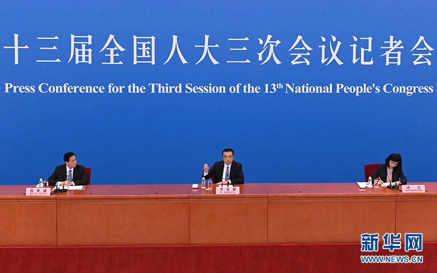 5月28日下午,十三屆全國人大三次會議在北京人民大會堂舉行記者會,國務院總理李克強應大會發言人張業遂的邀請出席記者會,并回答中外記者提問。 新華社記者 陳曄華 攝