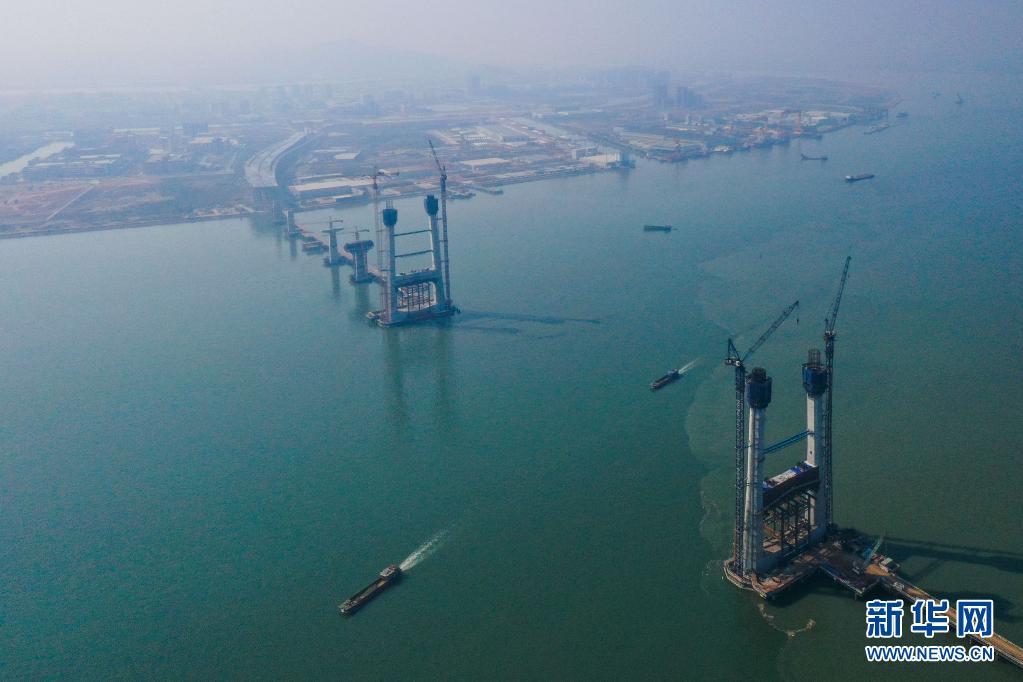 距此正北38公里,內伶仃洋里,連接珠江兩岸的又一超級跨海工程建設正如火如荼——深中通道初具規模。在中山市珠江西岸的馬鞍島旁,一排巨大橋墩延伸向水天一色處,遠處伶仃洋大橋主塔已施工至210米高程,中山大橋主塔已施工至150米高程……