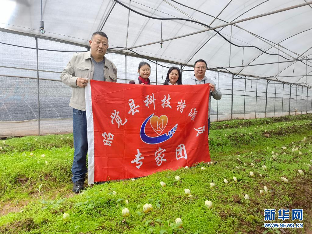 2020年6月3日,西南醫(yī)科大學(xué)副教授夏紀(jì)毅(右一)與同事在四川涼山彝族自治州昭覺縣火普村考察靈芝種植產(chǎn)業(yè)時(shí)合影。新華社發(fā)