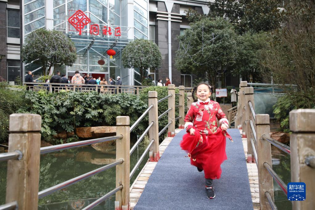 貴陽市觀山湖區(qū)金陽街道金元社區(qū)內(nèi),一名孩子在奔跑玩耍(2月4日攝)。新華社記者 劉續(xù) 攝