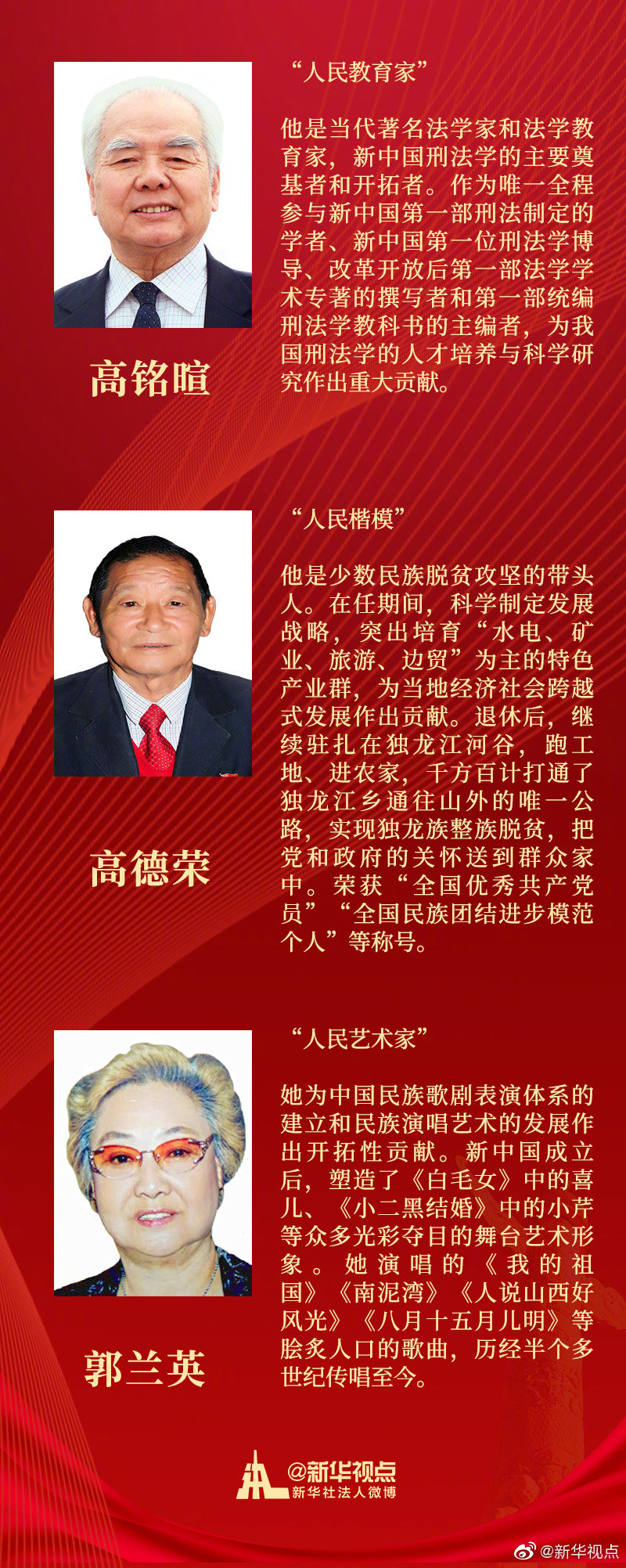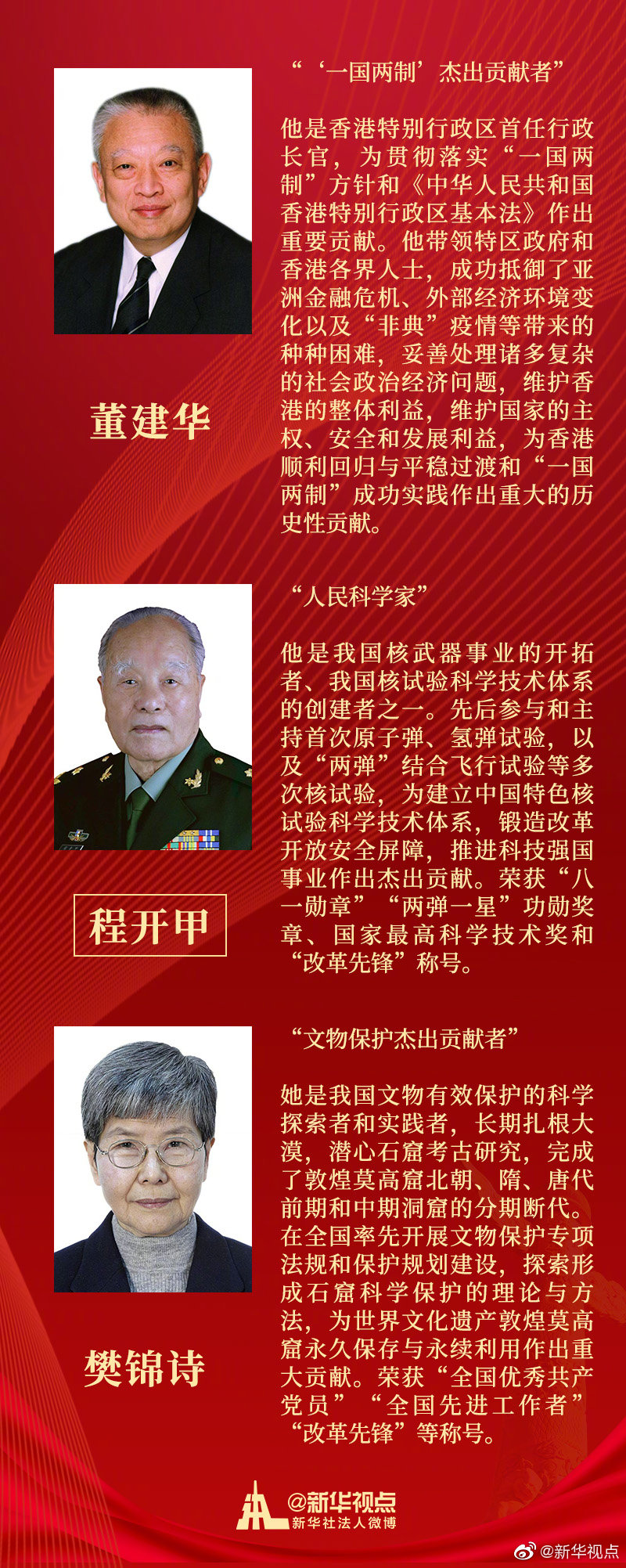 南仁東、董建華、于漪、王蒙、王有德等28人獲授國家榮譽稱號。他們與時代同行、砥礪奮進,為共和國的事業鞠躬盡瘁,不朽的“鋼鐵精神”將永遠激勵著我們。為這些閃亮的名字點贊!轉發傳遞,致敬功勛!