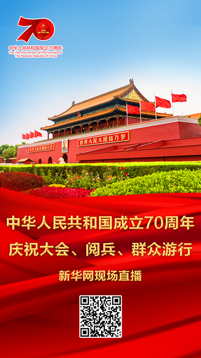 新華社北京9月29日電 10月1日上午,慶祝中華人民共和國成立70周年大會將在北京天安門廣場隆重舉行。屆時,中共中央總書記、國家主席、中央軍委主席習(xí)近平將發(fā)表重要講話,隨后舉行盛大的閱兵式和群眾游行。廣播電臺、電視臺、新聞網(wǎng)站將現(xiàn)場直播國慶慶祝大會、閱兵式和群眾游行。