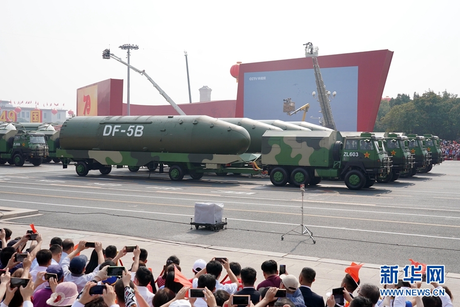 10月1日上午,慶祝中華人民共和國成立70周年大會在北京天安門廣場隆重舉行。這是東風-5B核導彈方隊。 新華社記者 楊世堯 攝