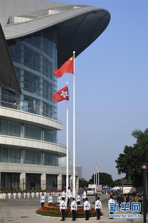 10月1日,香港特區政府在金紫荊廣場舉行升旗儀式,慶祝中華人民共和國成立70周年。新華社記者 呂小煒 攝