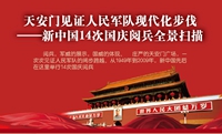從1949年到1959年,每年10月1日都舉行國慶閱兵。此后,連續24年沒有舉行國慶閱兵。1984年,新中國成立35周年時,恢復了國慶閱兵。1999年、2009年,分別舉行了國慶50周年、60周年閱兵。14次閱兵,濃縮了人民軍隊現代化發展步伐。開國大典閱兵式,閱兵部隊裝備是“萬國造”;1959年,受閱武器裝備基本實現國產化;1984年,受閱28種武器裝備全部是我國自行研制的,核武器首次亮相;1999年,新裝備占90%以上;2009年,受閱裝備大多已達到或接近世界先進水平。
