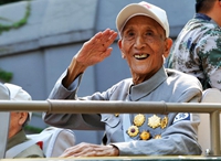 • 抗戰老同志乘車方隊:國共兩黨抗戰老兵共同參閱