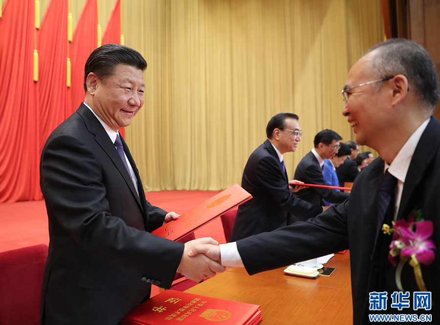 1月8日,國家科學技術獎勵大會在北京人民大會堂隆重舉行。習近平等黨和國家領導人向獲獎代表頒獎。 新華社記者 鞠鵬 攝