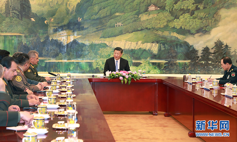 習近平表示,上海合作組織各成員國防務部門和軍隊認真貫徹元首共識,不斷完善防務部門和軍隊領導會議機制,積極開展各領域互利合作,特別是打造了“和平使命”系列軍事演習、“和平號角”軍樂節等軍事文化品牌,為維護地區安全穩定作出了積極貢獻。