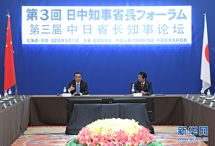 新華社日本札幌5月11日電(記者 譚晶晶 姜俏梅)當地時間5月11日上午,國務院總理李克強在北海道札幌下榻飯店出席中日省長知事論壇開幕式并致辭。日本首相安倍晉三出席。