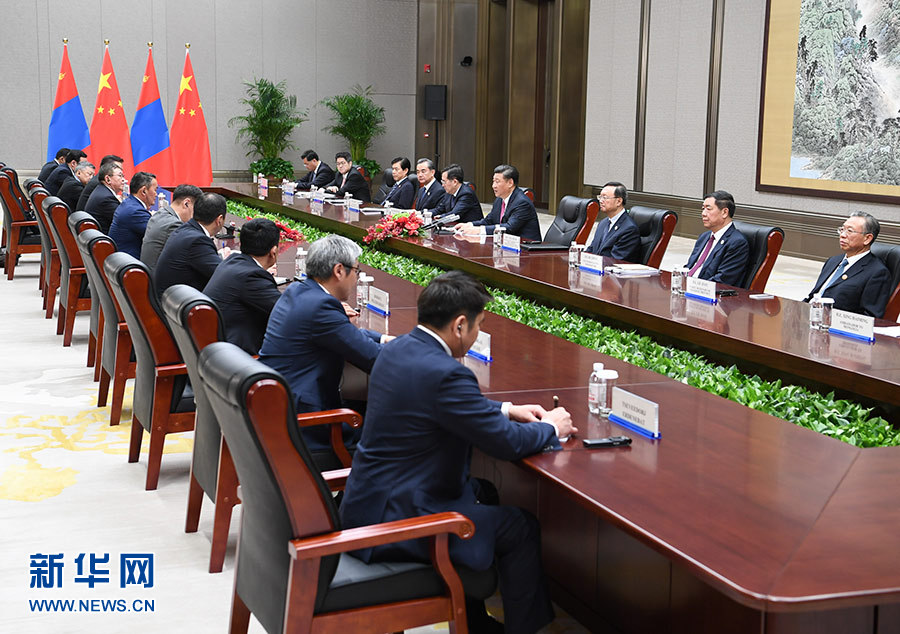習近平指出,中蒙是山水相連的近鄰。中蒙關(guān)系發(fā)展符合兩國人民根本利益。我贊賞總統(tǒng)先生就任后多次表示重視中蒙關(guān)系,愿推動中蒙全面戰(zhàn)略伙伴關(guān)系不斷發(fā)展。中方愿同蒙方一道,本著互信、合作、共贏原則,把握機遇,排除干擾,扎實開展各領域交往和合作,豐富中蒙全面戰(zhàn)略伙伴關(guān)系內(nèi)涵,開創(chuàng)兩國合作新局面。