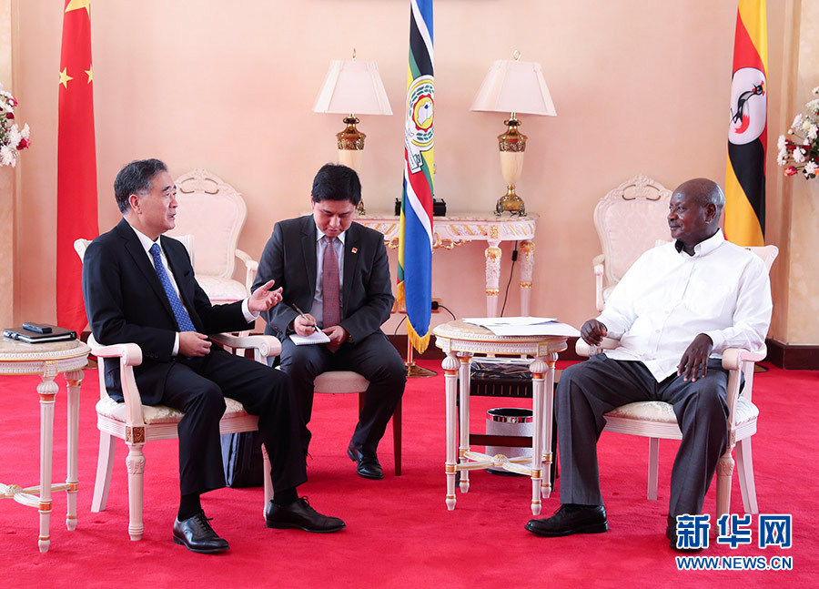 穆塞韋尼請汪洋轉達對習主席的親切問候和良好祝愿。他表示,烏中傳統友誼深厚。中國老一輩領導人在烏反殖民和民族獨立進程中始終同烏人民堅定地站在一起。習主席提出中非“十大合作計劃”,為烏實現國家轉型和中長期發展提供了新機遇。我對烏中合作十分滿意,期待同習主席在北京峰會上共同規劃非中關系美好未來。會見后,汪洋與穆塞韋尼共同為中交建公司承建的烏干達首條國家高速公路通車剪彩。