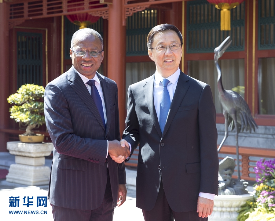 9月6日,中共中央政治局常委、國務(wù)院副總理韓正在北京釣魚臺國賓館會見佛得角總理席爾瓦。 新華社記者 王曄 攝