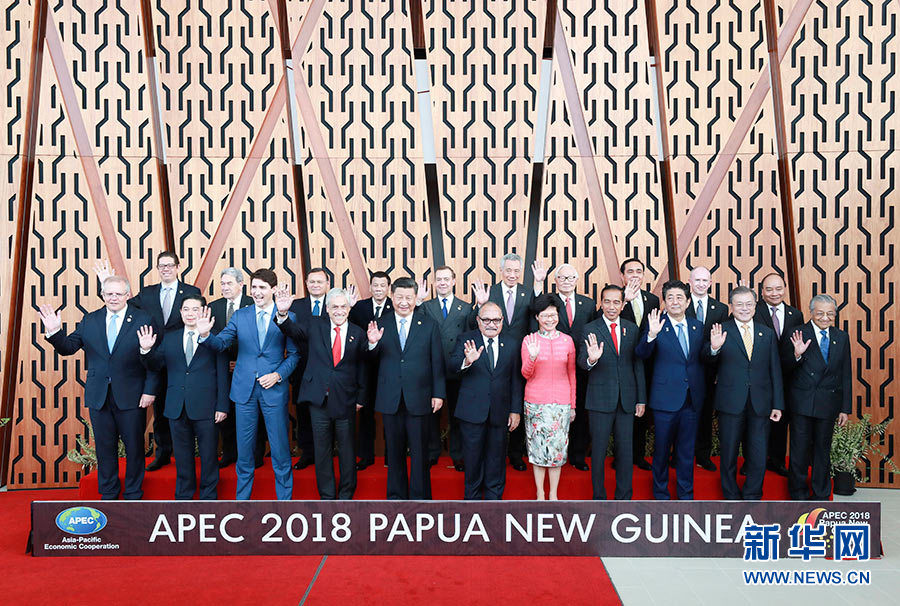 11月17日,國家主席習近平應邀出席在巴布亞新幾內亞莫爾茲比港舉行的亞太經合組織工商領導人峰會并發(fā)表題為《同舟共濟創(chuàng)造美好未來》的主旨演講。同日,習近平還出席了亞太經合組織領導人同工商咨詢理事會代表對話會。對話會前,習近平同其他亞太經合組織成員經濟體領導人、代表合影。 新華社記者 龐興雷 攝