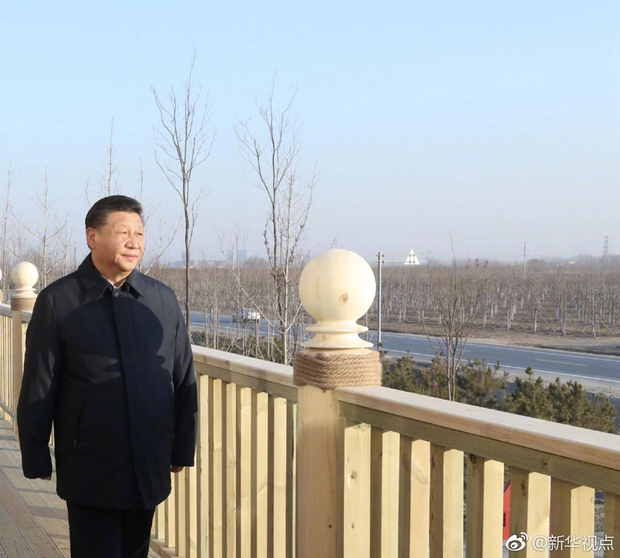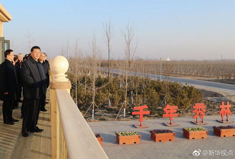 雄安新區堅持生態優先、綠色發展,率先啟動生態基礎設施建設和環境整治,目前已完成11萬畝“千年秀林”建設。16日下午,習近平總書記來到“千年秀林”大清河片林一區造林區域,乘車穿行林區察看林木長勢,登上秀林驛站二層平臺遠眺林區全貌,同當地護林員代表親切交流。他說,藍天、碧水、綠樹,藍綠交織,將來生活的最高標準就是生態好。雄安新區過去有一定的基礎,現在搞“千年秀林”,將來這里一定是最宜居的地方。綠水青山就是金山銀山,雄安新區就要靠這樣的生態環境來體現價值、增加吸引力。(記者張曉松、謝環馳、鞠鵬)?