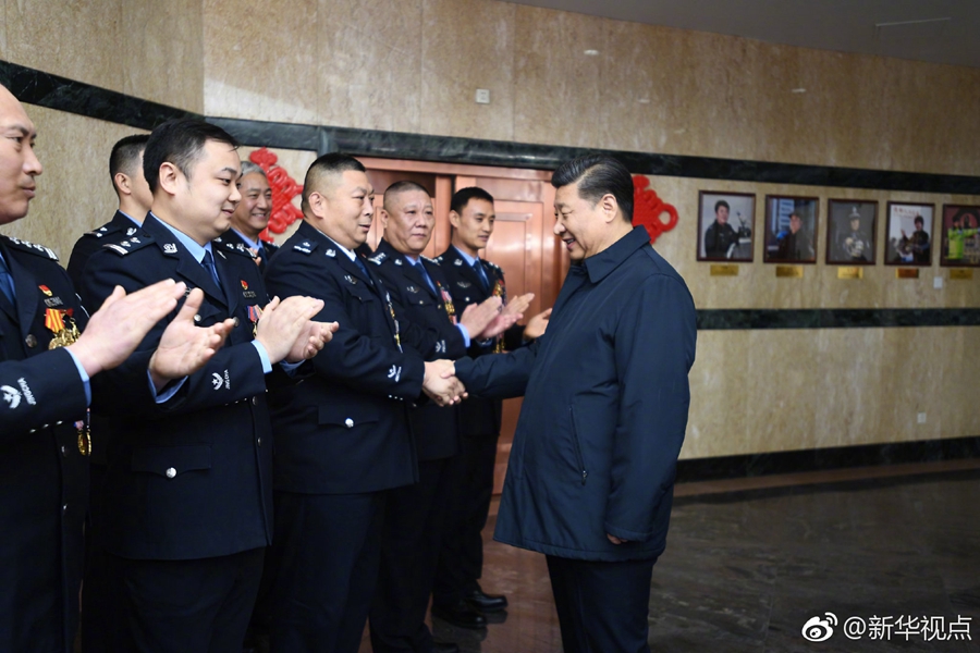 中華民族傳統節日農歷春節來臨之際,習近平總書記在北京看望慰問基層干部群眾,向全國各族人民致以美好的新春祝福。2月1日上午,習近平首先來到北京市公安局考察調研,看望公安干警,并視頻連線一線執勤民警。(記者張曉松、謝環馳) ????
