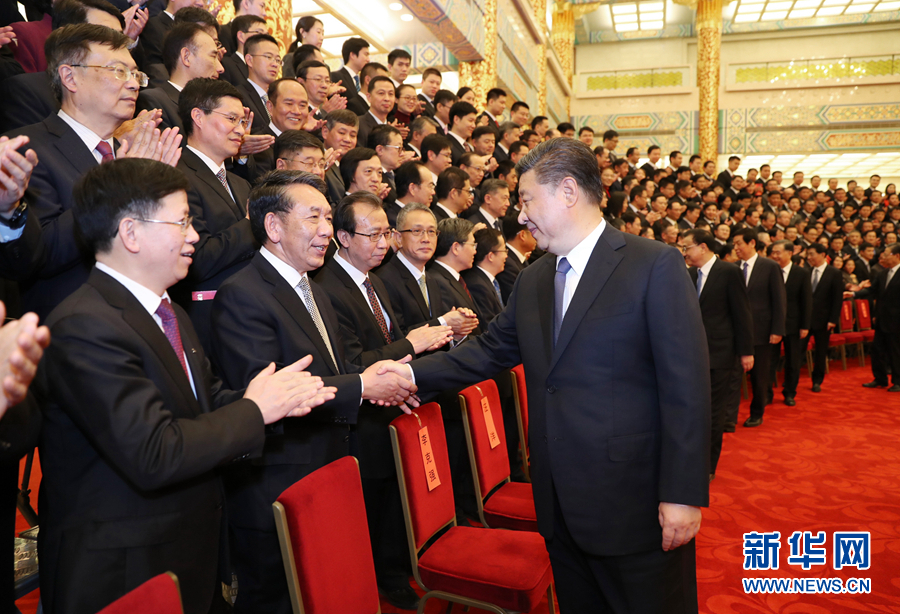 2月20日,黨和國家領導人習近平、李克強、栗戰書、汪洋、王滬寧、趙樂際、韓正等在北京人民大會堂會見探月工程嫦娥四號任務參研參試人員代表。習近平發表重要講話。 新華社記者黃敬文攝