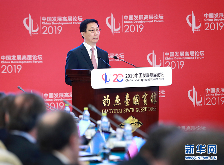 3月24日,中國發展高層論壇2019年年會在北京開幕。中共中央政治局常委、國務院副總理韓正出席開幕式并致辭。新華社記者 龐興雷 攝