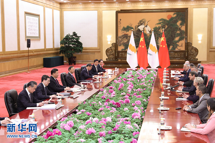 4月25日,國家主席習(xí)近平在北京人民大會堂會見塞浦路斯總統(tǒng)阿納斯塔夏季斯。 新華社記者 燕雁 攝