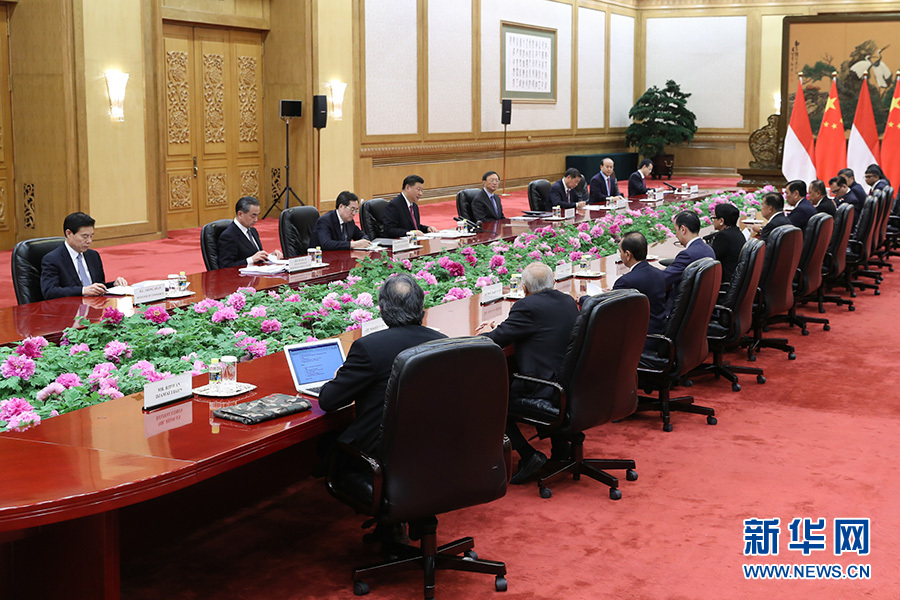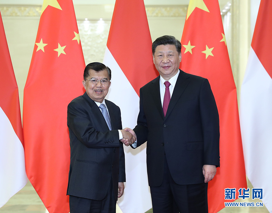 4月25日,國家主席習近平在北京人民大會堂會見印度尼西亞副總統卡拉。 新華社記者 王曄 攝