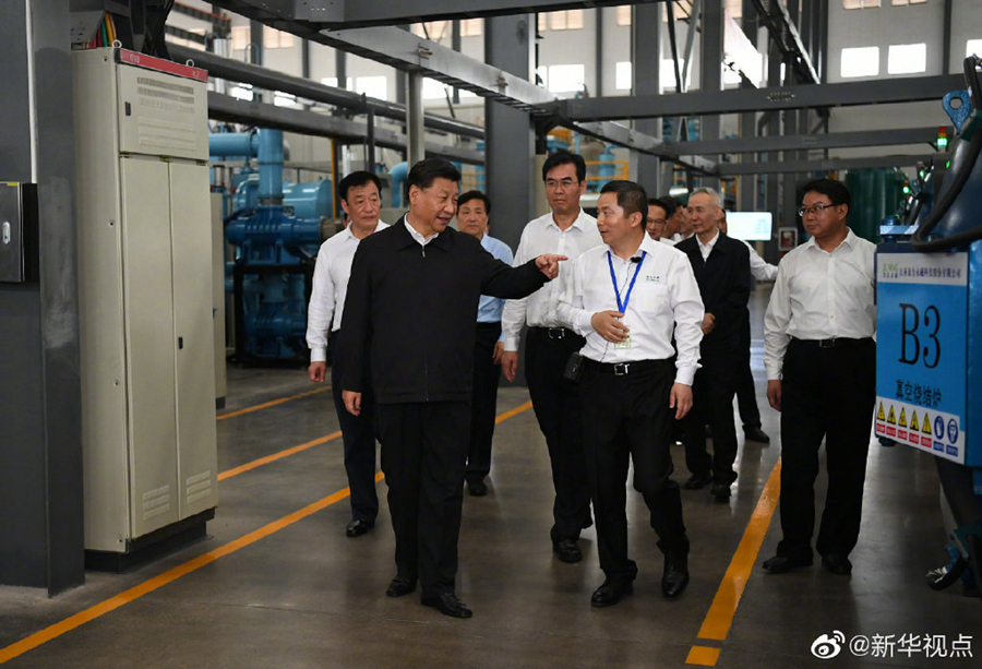 習近平總書記20日赴江西考察調研。他首先考察了位于贛州市的江西金力永磁科技股份有限公司,了解企業生產經營和贛州市稀土產業發展情況。(文字:張曉松 攝影:鞠鵬、謝環馳)?
