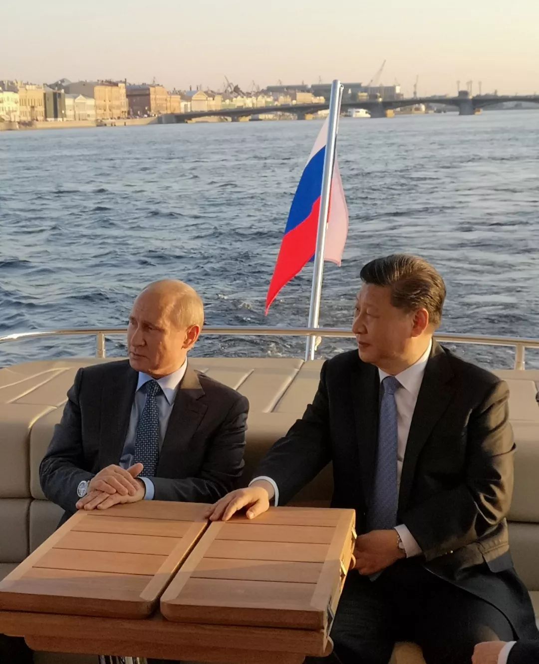 ↑6月6日,習主席在圣彼得堡同普京總統再次舉行會晤。普京總統邀請習主席共同乘船游覽涅瓦河。普京總統歡迎習主席再次到訪他的家鄉,并向習主席介紹圣彼得堡的風土人情和沿途建筑。新華社發