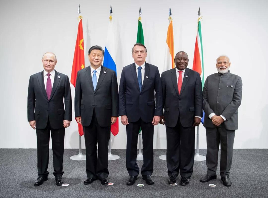 ↑金磚國家領導人會晤6月28日在大阪舉行。與會領導人圍繞金磚伙伴關系、全球治理、科技創新合作等深入交換意見,凝聚共識。新華社記者李濤攝
