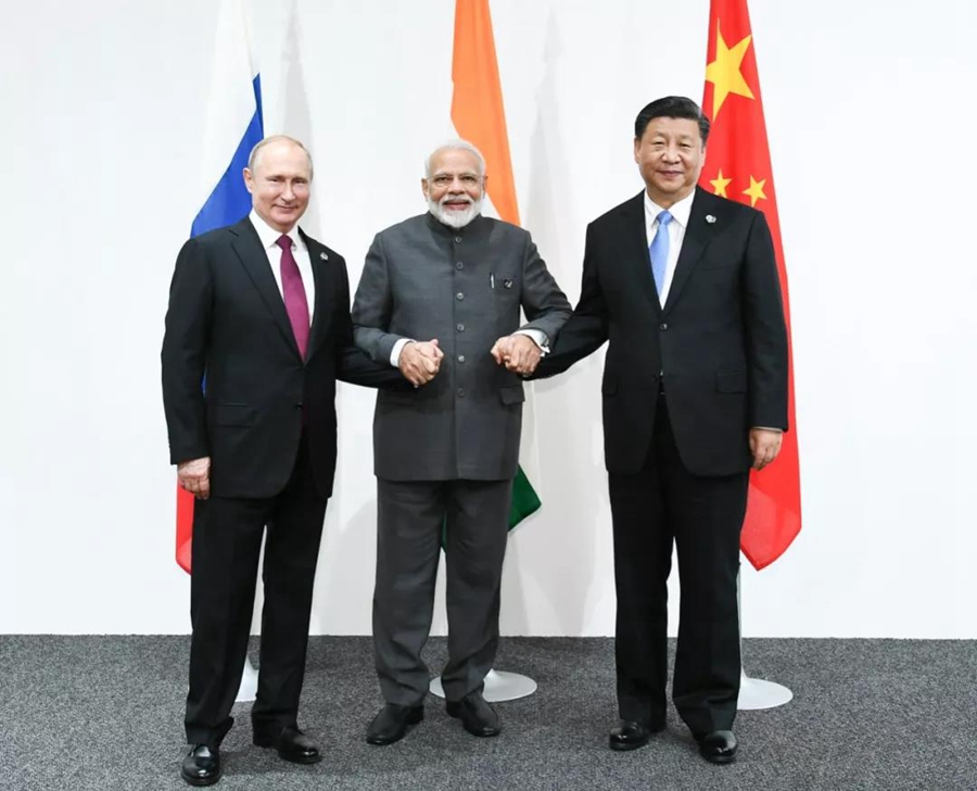 ↑6月28日,習主席在大阪出席中俄印領導人會晤,同俄羅斯總統普京、印度總理莫迪就當前國際形勢、重大國際和地區問題、三方合作深入交換意見。新華社記者謝環馳攝
