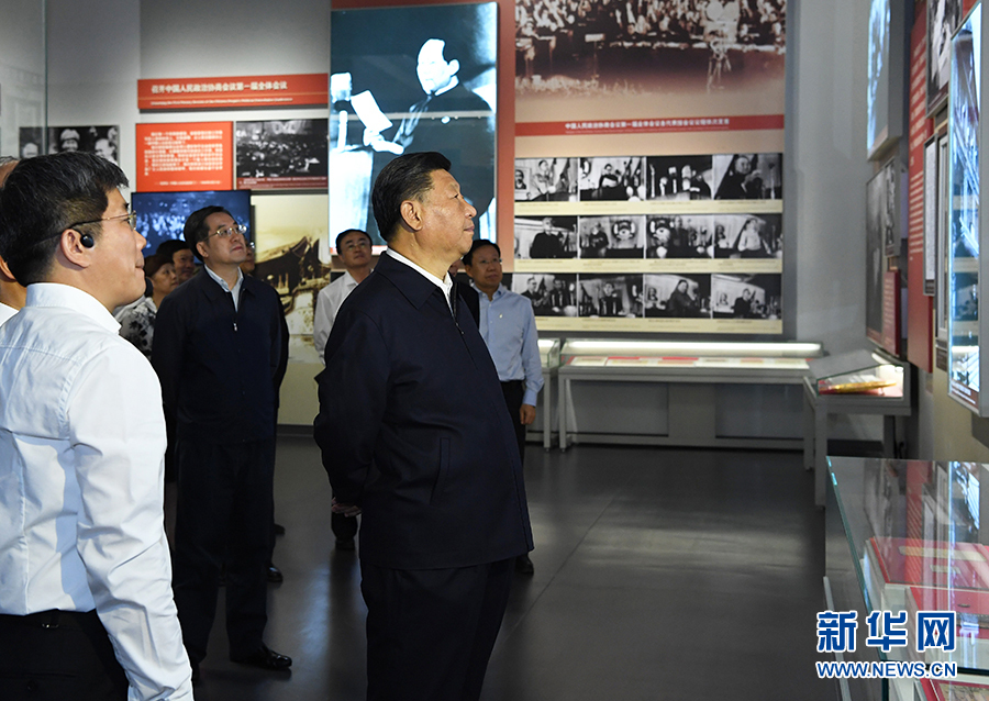 9月12日,中共中央總書(shū)記、國(guó)家主席、中央軍委主席習(xí)近平視察中共中央北京香山革命紀(jì)念地。這是習(xí)近平在香山革命紀(jì)念館參觀(guān)《為新中國(guó)奠基》主題展覽。 新華社記者 黃敬文 攝