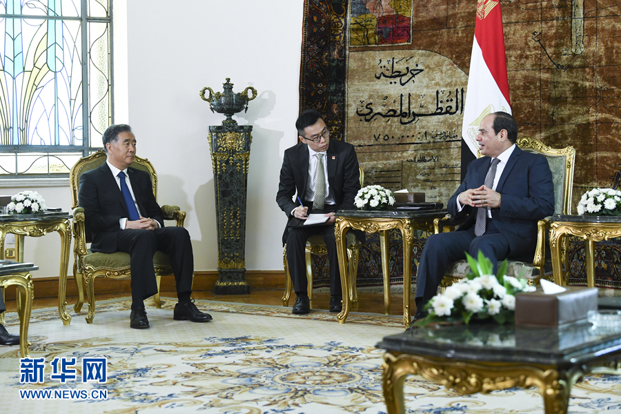 會見塞西時,汪洋轉(zhuǎn)達了習近平主席的親切問候和良好祝愿。汪洋說,在兩國元首共同引領(lǐng)下,中埃關(guān)系實現(xiàn)了歷史性發(fā)展。中方愿與埃方密切高層交往,深化政治互信,積極推進“一帶一路”框架下的務(wù)實合作,擴大國際和地區(qū)事務(wù)協(xié)調(diào)配合,加強反恐領(lǐng)域合作,推動中埃全面戰(zhàn)略伙伴關(guān)系取得更大發(fā)展。剛剛閉幕的中共十九屆四中全會為我們推進國家治理體系和治理能力現(xiàn)代化、實現(xiàn)民族復興構(gòu)筑了可靠的制度大廈,為人類制度文明貢獻了中國智慧和中國方案。中方愿與埃方加強治國理政經(jīng)驗交流,支持埃方走符合本國國情的發(fā)展道路。