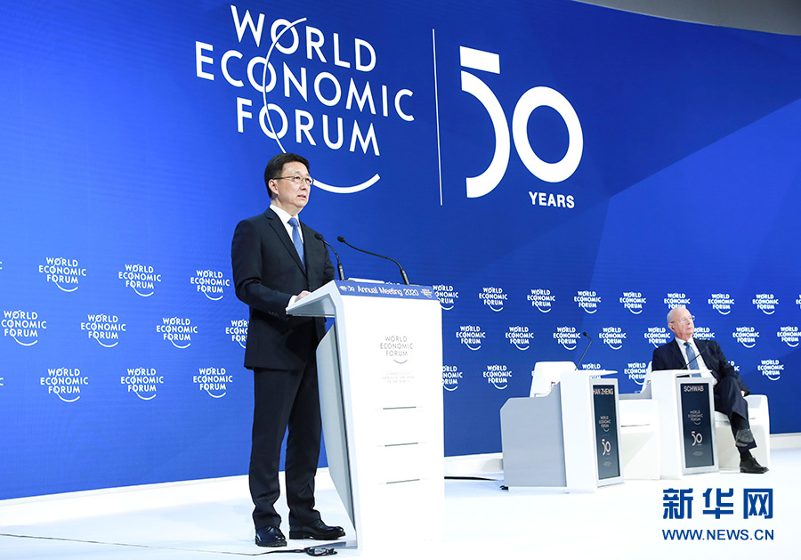 當(dāng)?shù)貢r(shí)間1月21日,中共中央政治局常委、國務(wù)院副總理韓正出席達(dá)沃斯世界經(jīng)濟(jì)論壇2020年年會,發(fā)表題為“共建開放型世界經(jīng)濟(jì) 推動全球可持續(xù)發(fā)展”的致辭。 新華社記者 龐興雷 攝
