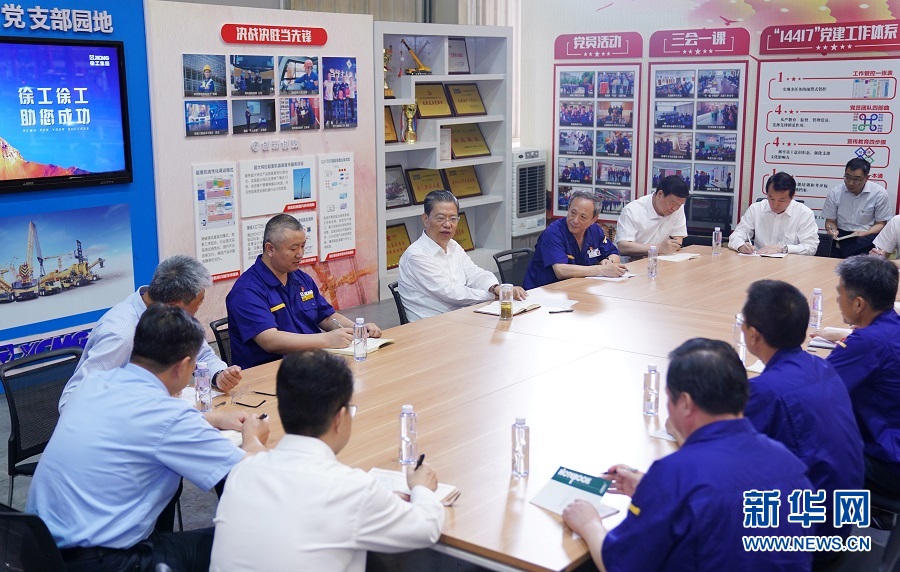 7月19日至22日,中共中央政治局常委、中央紀委書記趙樂際到江蘇調研。這是7月20日,趙樂際在徐工集團徐州重型機械有限公司與職工代表座談交流。 新華社記者 張領 攝