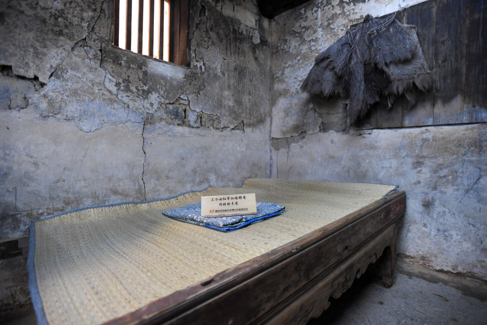 “在湖南汝城縣沙洲村,3名女紅軍借宿徐解秀老人家中,臨走時,把自己僅有的一床被子剪下一半給老人留下了。”