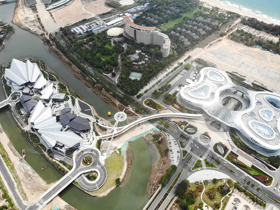2020年4月4日拍攝的三亞國際免稅城(無人機照片)。新華社發(張麗蕓攝)