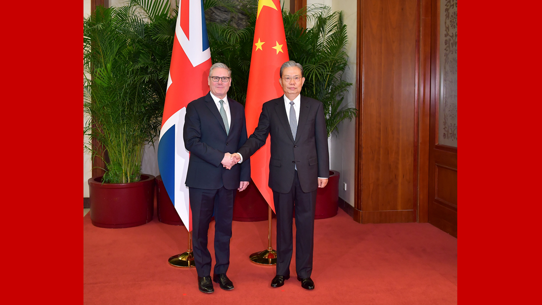 赵乐际表示,在变乱交织的国际形势下,发展好中英关系具有重要时代价值和全球意义。首相先生带领工党执政后,习近平主席同你通话、会晤,引领双边关系走上改善发展的正轨。中方愿同英方一道,秉持战略伙伴定位,把握积极务实、稳定互惠的正确方向,排除干扰,妥处分歧,确保中英关系走得稳、走得实、走得远。中方愿同英方相向而行,共同努力恢复两国立法机构正常交往,欢迎英国议员来华参访,感知真实、立体、全面的中国。