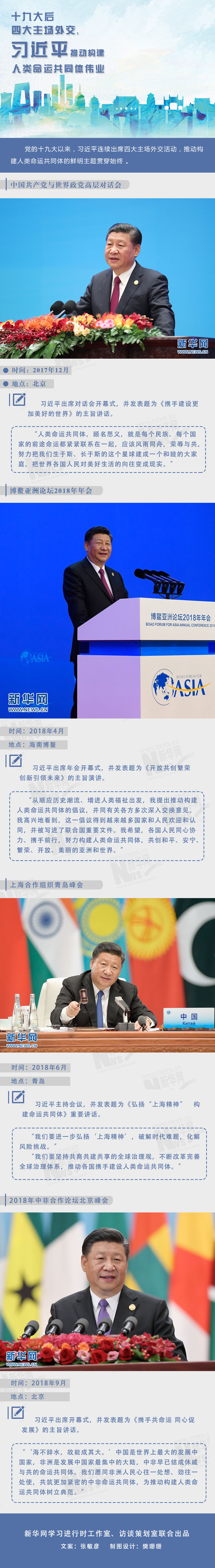 【學習進行時】黨的十九大以來,習近平連續出席四大主場外交活動,深入闡述了“人類命運共同體”這一理念。在黨的十九大勝利召開一周年之際,新華社《學習進行時》原創品牌欄目“講習所”推出“回望十九大一年間”系列之《四大主場外交,習近平深入闡述這一理念》,為您梳理解讀。