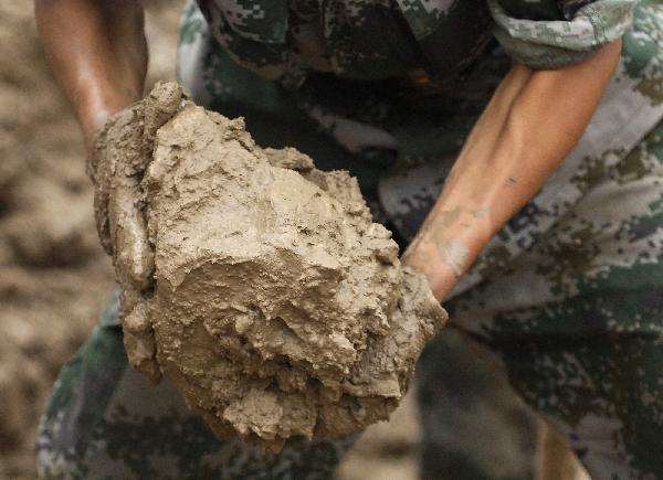 舟曲災區特寫:戰士的手