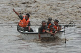 沖鋒舟為舟曲受災群眾開辟水上通道