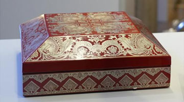 6月9日在“鄂尔多斯青铜器文物精品展”拍摄的展品“金凤冠”。