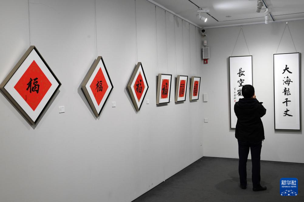 当日,“龙行六合、星语楹春”跨界书家春联展在北京举行,展出书法家、演员、歌手等各界艺术家创作的春联、福字等作品。