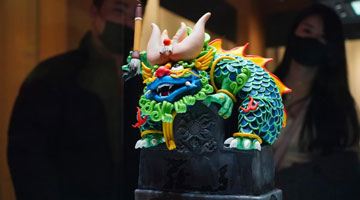 1月12日,观众在观赏画作《上海长高了》。