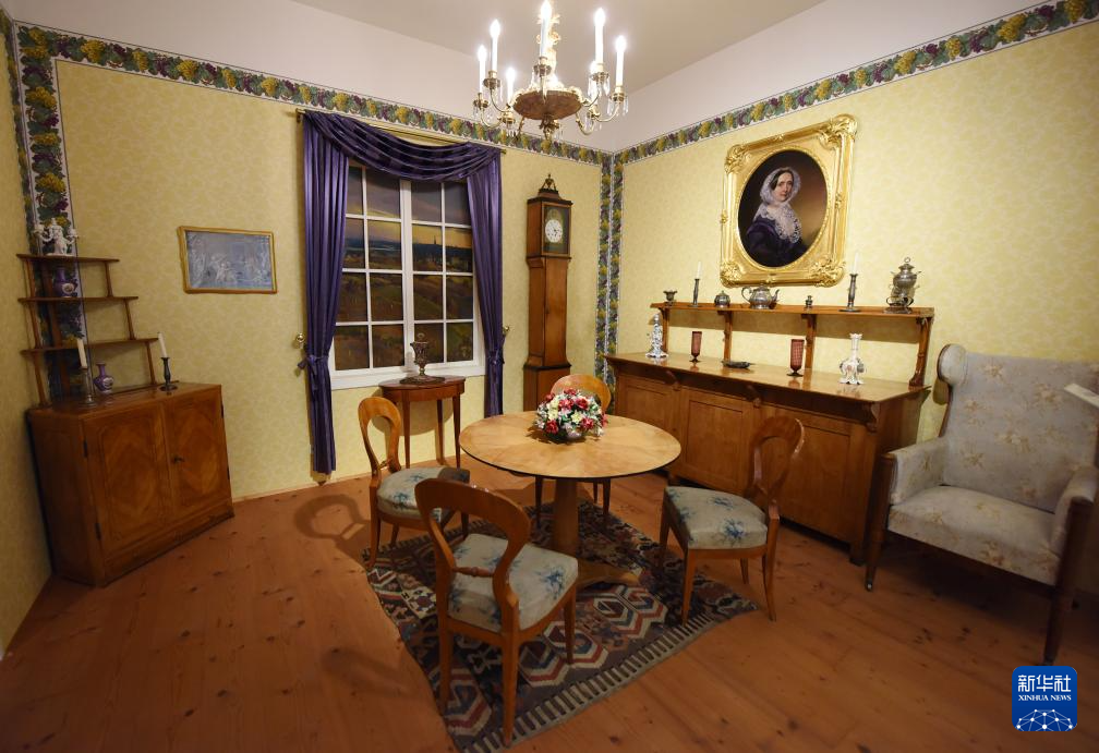 这是3月1日在维也纳家具博物馆拍摄的19世纪早期沙龙样板间。