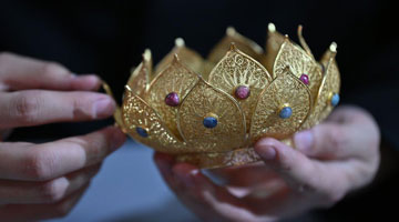 3月28日,在山西省岚县岚城镇,人们欣赏面塑作品。