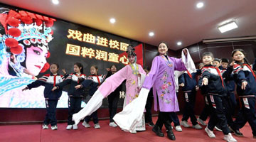 3月28日,在山西省岚县岚城镇,人们用手机拍摄面塑作品。