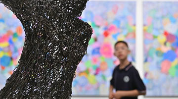 6月17日在上海博物馆人民广场馆拍摄的来自埃及国家博物馆的埃赫那吞半身像。